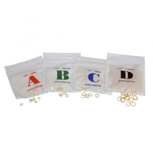Latex de qualité chirurgicale qui assure une force constante. Les élastiques sans latex sont destinés aux patients présentant des allergies et sont transparents.