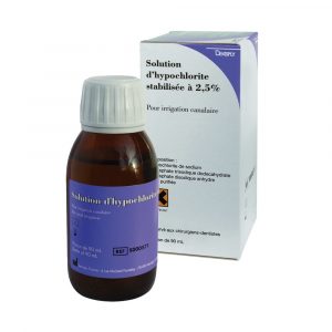 Hypochlorite de sodium stabilisé à 2,5%. Il est utilisé pour le nettoyage et la désinfection canalaire.